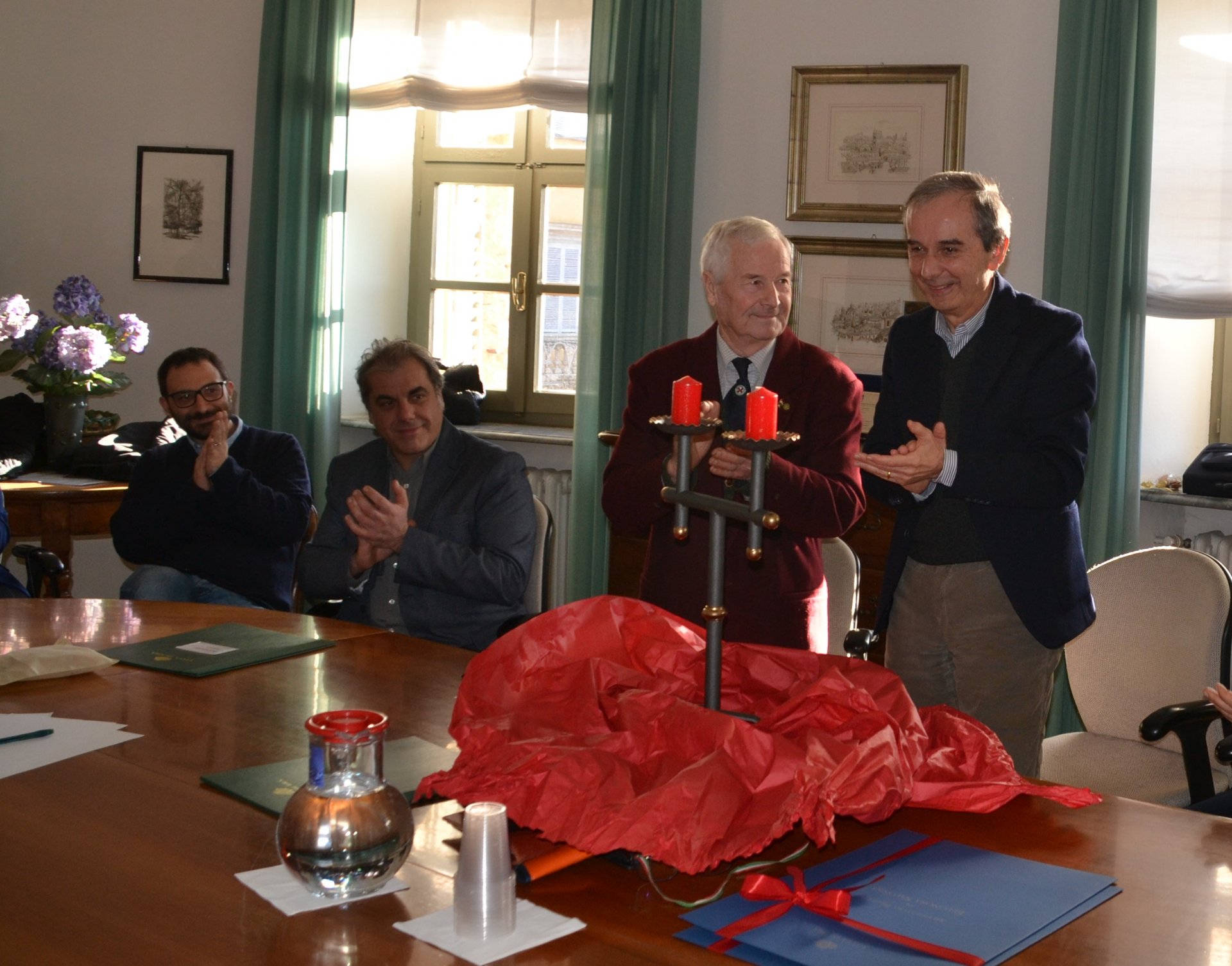 All’incontro ha partecipato una delegazione della Sezione cittadina dell’Associazione nazionale insigniti onorificenze cavalleresche, l’Anioc, guidata dal presidente Stefano Milanesio, che ha voluto consegnare al primo cittadino un dono realizzato con le proprie mani.